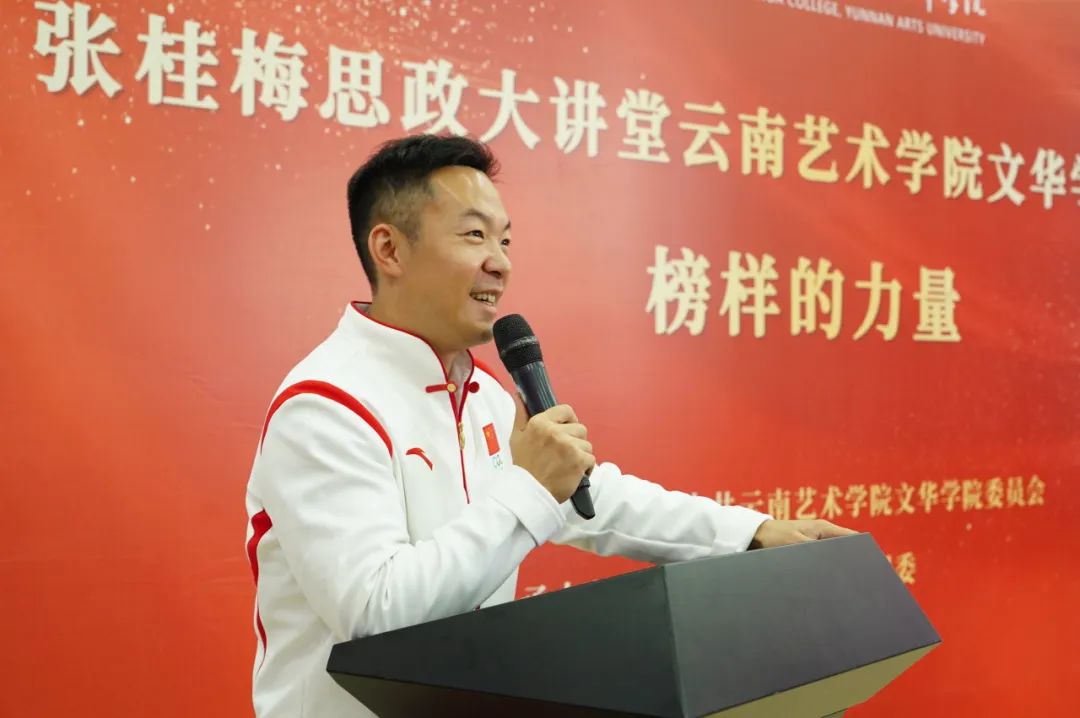 为深入打造“张桂梅思政大讲堂云南艺术学院文华学院分课堂”,建设全校思政“金课”,2023年10月24日,第三十届伦敦奥运会男子体操团体冠军郭伟阳受邀到校,以“榜样的力量”为主题,开展张桂梅思政大讲堂云南艺术学院文华学院分课堂专题讲座,引导广大师生树立远大理想,勇担时代重任,筑牢理想信念之基,争做眼里有光、心中有梦、脚下有力量的新时代奋进者。师生党员、团学干部代表共200余人参加,党委委员、宣传部长刘艳主持。