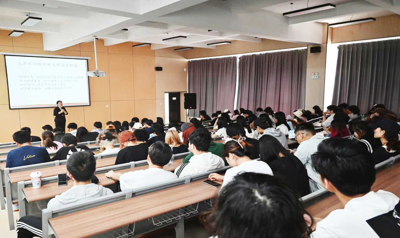 杨宣华教授为同学们介绍了中国电影音乐的萌芽与迅速发展、“十七年”时期电影音乐、“文革”时期电影音乐、新时期电影音乐四个时期电影音乐的特征,在介绍过程中选取了中国电影史上具有代表性的电影作品,通过现场演唱和详细读解的方式,阐述了中国民族音乐如何被电影人进行改编并运用于电影创作中,以及起到烘托电影主题和营造影片意境的作用,为解读中国民族音乐与中国电影提出了自己的见解。