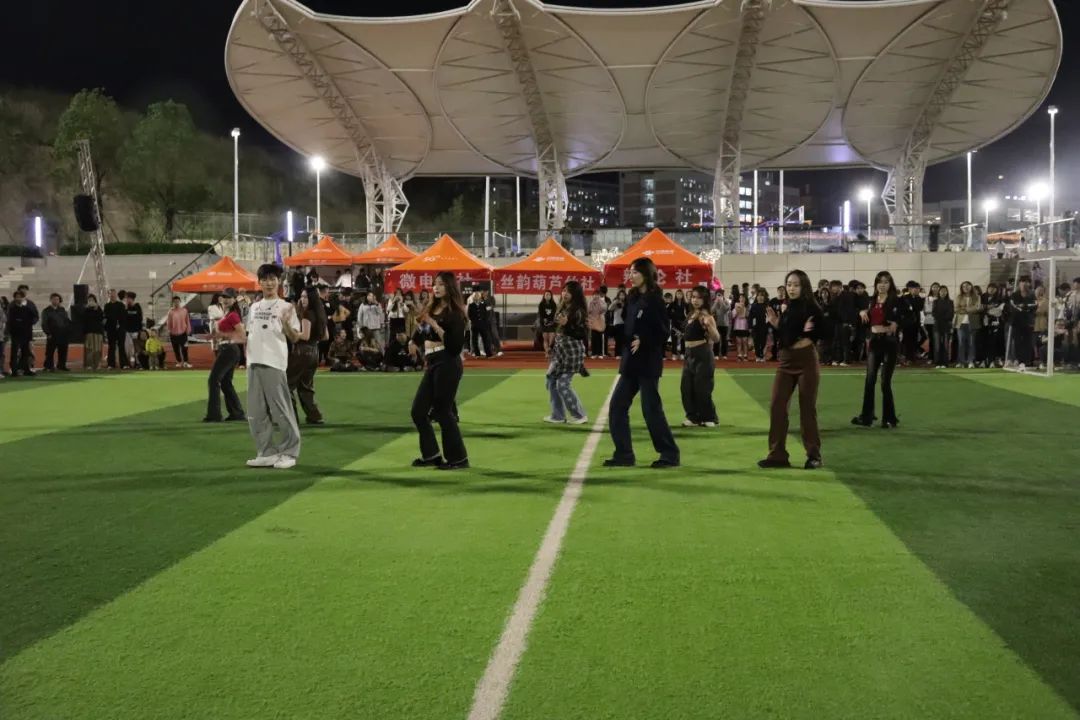 在游园会进行的热火朝天的同时,各个社团纳新也在火热进行中。简易的舞台上,各社团展示才艺、绝活、特色,吸引大波同学驻足观看,欣赏、欢呼、鼓掌。