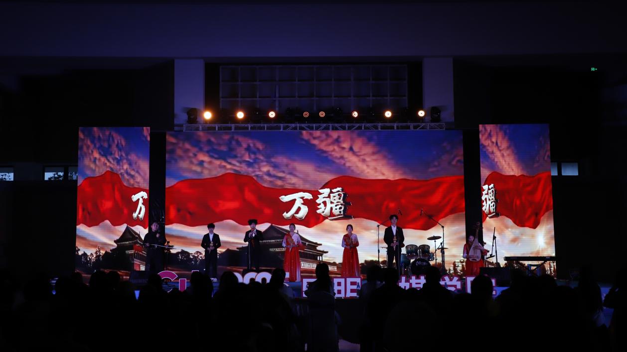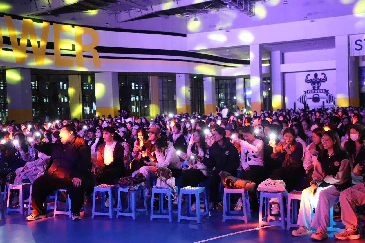 葫芦丝社领衔献上精彩乐器合奏,以宛转悠扬为主调,搭配二胡的醇厚绵长、琵琶的清脆灵动,多声部旋律交织共鸣,为晚会注入雅致诗意;汉服社成员身着传统服饰款款走来,衣袂飘飘间尽显中华美学韵味;抒情歌曲温柔治愈、劲歌热曲点燃全场;舞蹈节目或灵动轻快或动感炸裂。当《至少还有你》的旋律响起,全场灯光暗下、荧光闪烁。师生们不约而同挥手合唱,浪漫与感动在空气中弥漫,将晚会氛围推向顶峰。