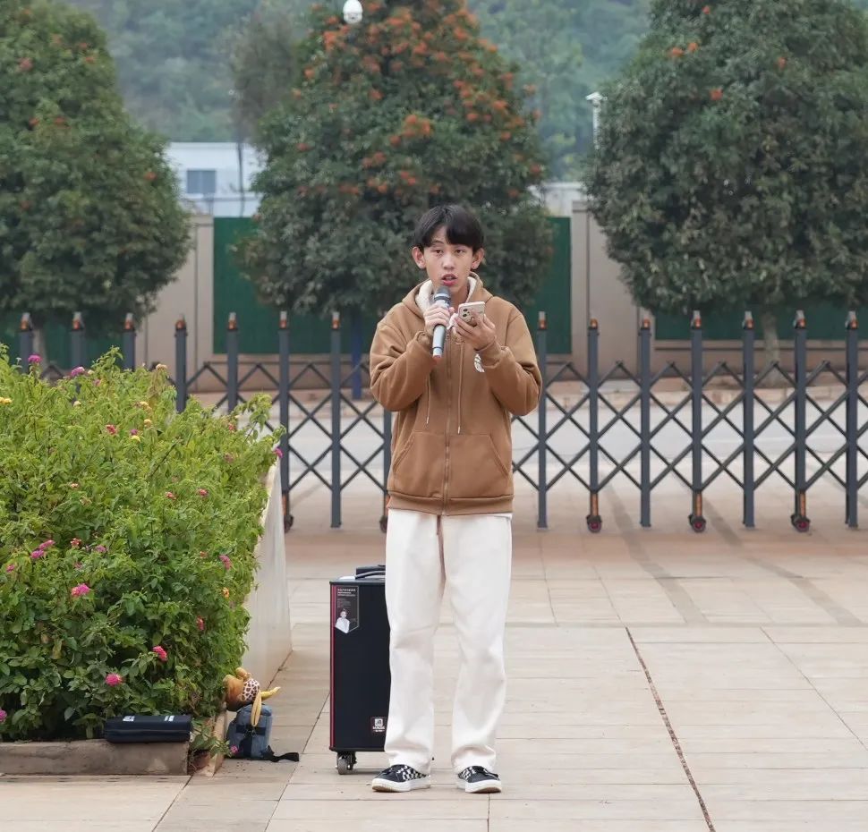 国歌响起,全体在场同学齐唱国歌,歌声坚定响亮。国歌声中,擎旗手将国旗高高扬起,那一抹红色在晨光中格外耀眼。国旗缓缓升起,在微风中舒展,在全场同学的注视下升至顶端。
