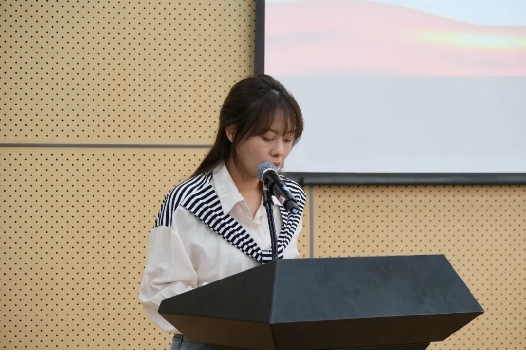 暑期社会实践代表邵梦娣同学发言。