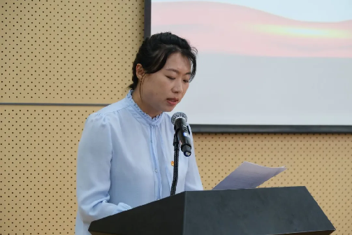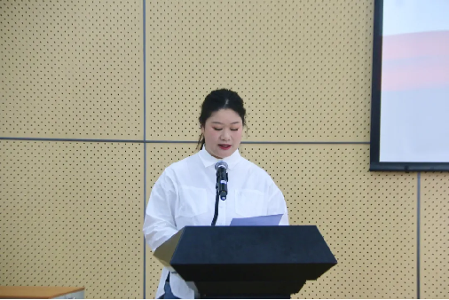 校团委书记韩玉娇宣读《bat365正版唯一官网团委关于2024年大学生暑期“三下乡”社会实践团队立项的决定》。